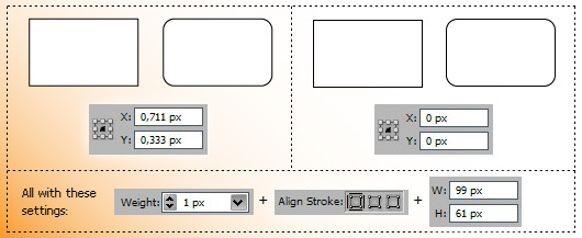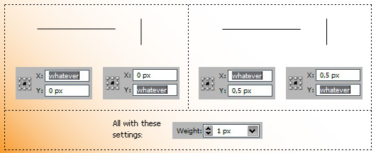 ピクセルラインは、位置ラインで常に 半 XとYの値を設定します。