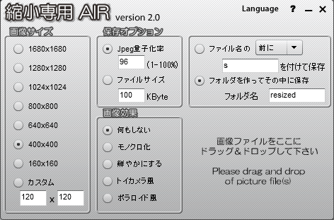Windows & MacOS に対応した画像縮小アプリケーション「縮小専用AIR」